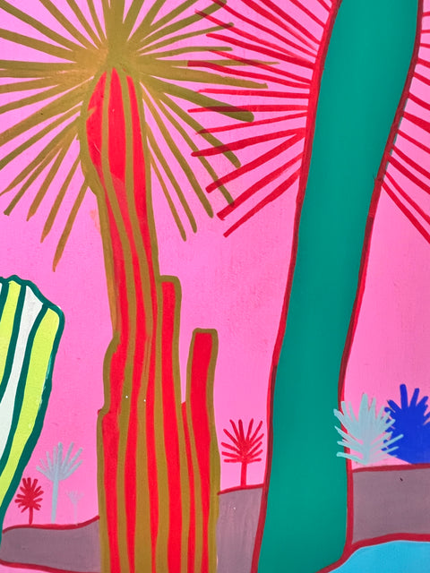 Pinta para recordar: “Pinto para no olvidar”. A través de su arte, recupera fragmentos de su infancia—recuerdos de cruzar fronteras, del movimiento constante, de desprenderse de pieles. Su proceso creativo tiene raíces en el recuerdo: pintar se convierte en una forma de mantener vivas las memorias y dar forma a lo que no se puede expresar con palabras.